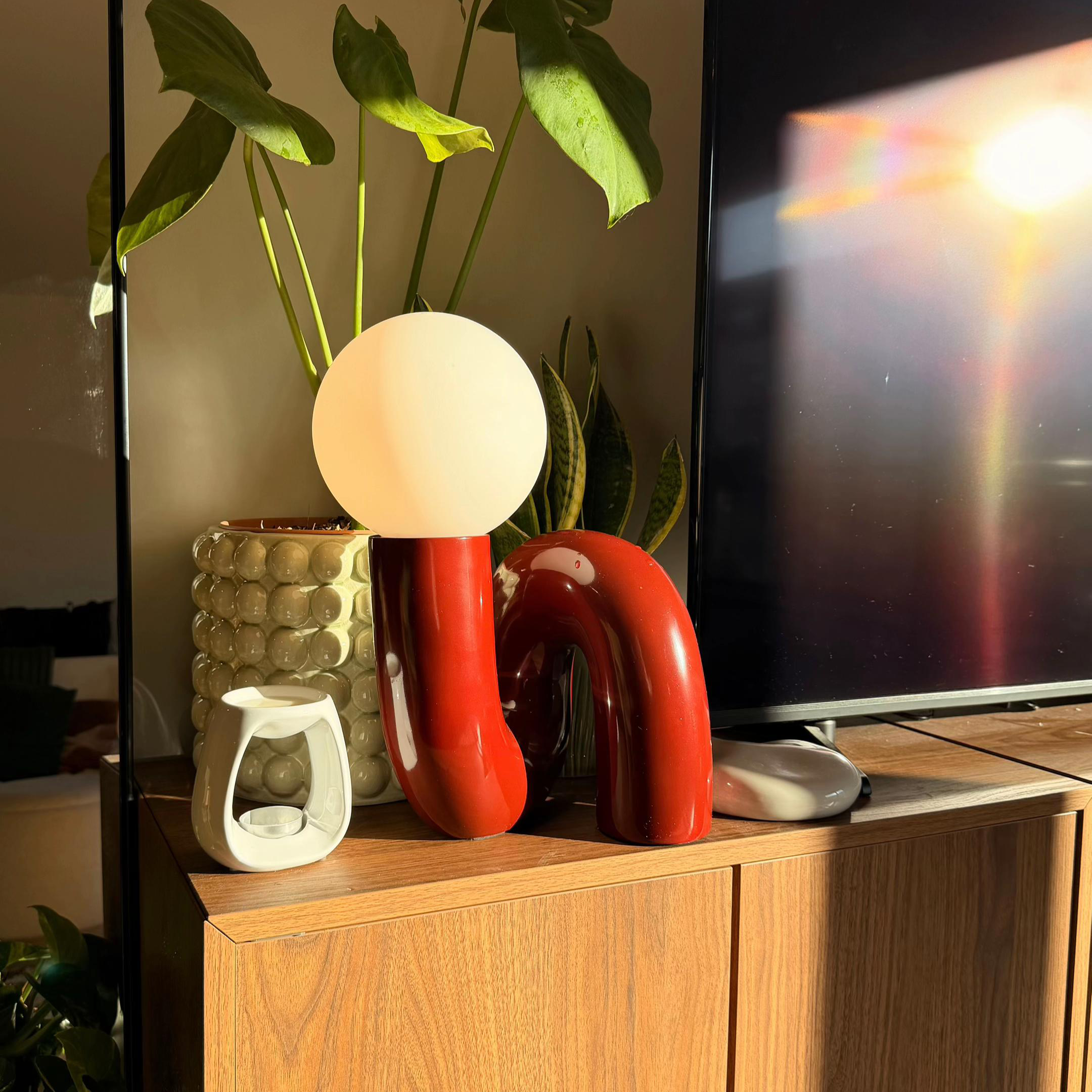 The Gittana Table Lamp features a curvy, sculptural silhouette with a resin base that gives every piece its own character. Playful yet elegant, it brings soft light and a touch of personality to any room.
